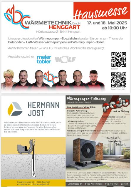 Heizung Sanieren? in Henggart findet eine Hausmesse statt